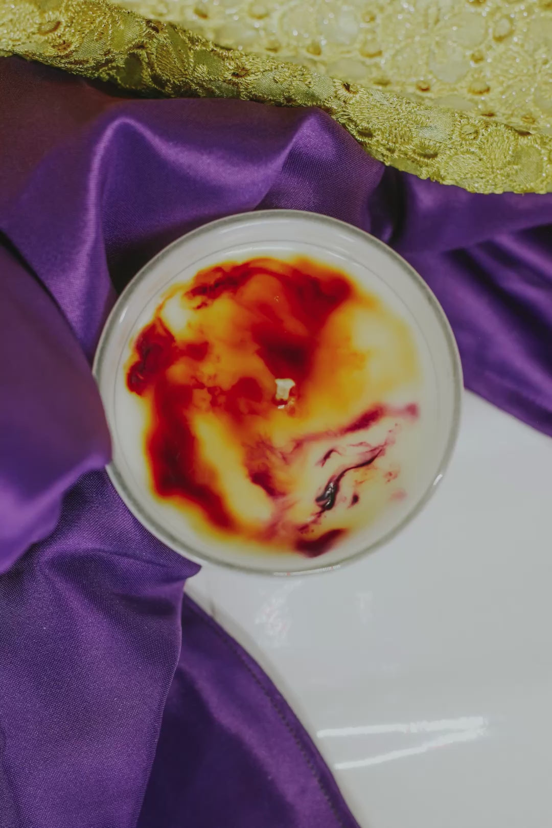 Please note: 1) As our products are handmade, each candle’s top design will vary, and no two candles are the same. How fun! It’s just like how God made us! 2) The marbling effect fades into a pastel hue over time